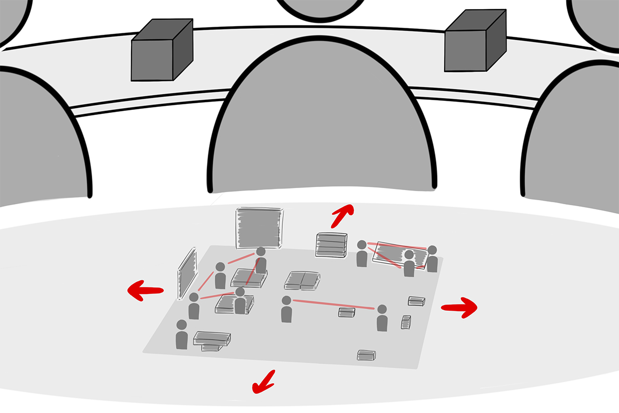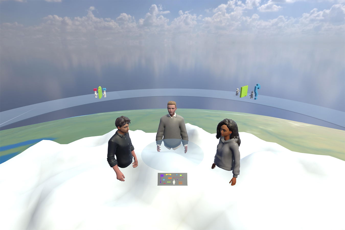 Immer häufiger arbeiten Teams in Großunternehmen von verschiedenen Standorten aus zusammen, wodurch sie mit den Herausforderungen der räumlichen Distanz und fehlender persönlicher Interaktion konfrontiert sind. BuiltUp beschäftigt sich mit einem Zukunftsszenario, in dem eine Zusammenarbeit von remote und dezentral agierenden Teams ganz anders aussehen könnte, als heute. In diesem Szenario können Teams mithilfe von Virtual-Reality-Headsets in virtuellen Räumen zusammenarbeiten. Die Technologie ermöglicht es ihnen, trotz Entfernung zueinander, auf eine neue Weise zu interagieren und intensiv in die gemeinsame Arbeit abzutauchen. Das Ziel dieses Projektes besteht darin, die Zusammenarbeit durch gemeinsame Reflexion bei regelmäßigen Treffen, sogenannten Retrospektiven, im virtuellen Raum zu verbessern. Dafür gibt BuiltUp den Teams ein Tool, das ihnen ermöglicht, ihre Ideen von der vergangenen und zukünftigen Zusammenarbeit mit virtuellen Bausteinen zu modellieren und so visuell darzustellen. Das gemeinsame Bauen hilft den Teams, ihre Ideen anschaulich zu kommunizieren und ein gemeinsames Verständnis zu entwickeln. Außerdem fördert es die Kreativität und hilft, komplexe Gedanken auf das Wesentliche zu reduzieren. So könnte die Zukunft der Arbeit aussehen: