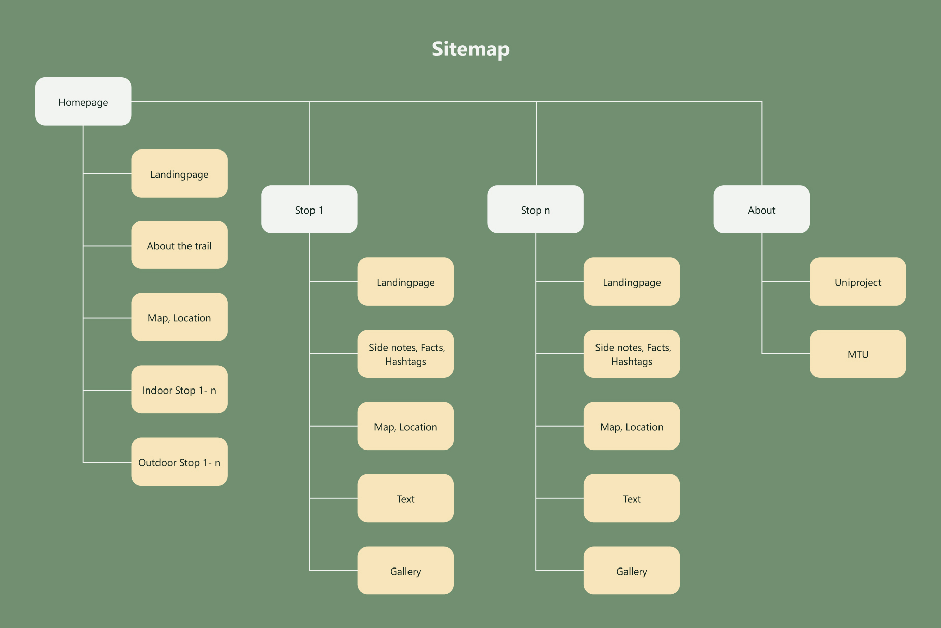 Die Website umfasst eine Landing Page mit Navigation sowie einzelne Seiten für jeden ausgewählten Standort. Jede Standortseite enthielt relevante Inhalte, einschließlich Beschreibungen und visuelle Elemente.