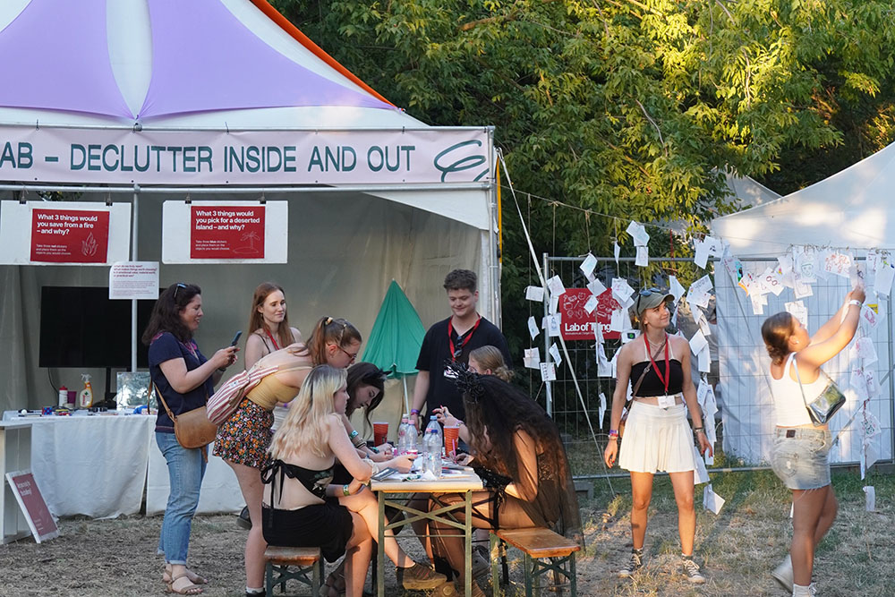 Im Fokus des Lab of Things steht die Annäherung an das Sustainable Development Goal 12: Responsible Consumption and Production der United Nations. Ziel ist es, dieses SDG erlebbar zu machen und dessen Bezug zum persönlichen Alltag sichtbar herzustellen. Darüber hinaus soll ein Dialog über Überkonsum angestoßen werden. Die Festivalbesuchenden werden eingeladen, über ihre persönliche Beziehung zu Besitz und Konsum nachzudenken, indem sie sich aktiv mit interaktiven Aufgaben und Fragestellungen auseinandersetzen. Im besten Fall entstehen neue Perspektiven für ein verantwortungsbewusstes Konsumverhalten, verbunden mit Freude am Entrümpeln und der Motivation zu nachhaltigem Handeln.