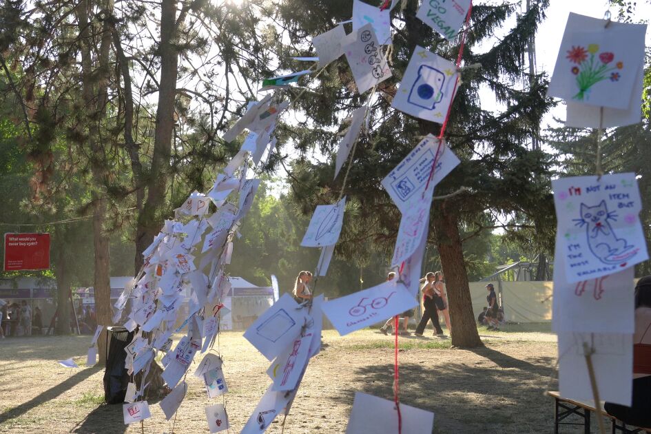 Ein besonderer Blickfang war die String Wall am Stand, die sich im Laufe des Festivals wie ein lebendiges Netz mit zahlreichen persönlichen Skizzen und Zeichnungen füllte. Vom Surfbrett bis zum Handy: Die Besuchenden sollten ihren wertvollsten Gegenstand visualisieren. Am Zeichentisch konnten sie verweilen, kreativ werden und dabei ins Gespräch kommen.